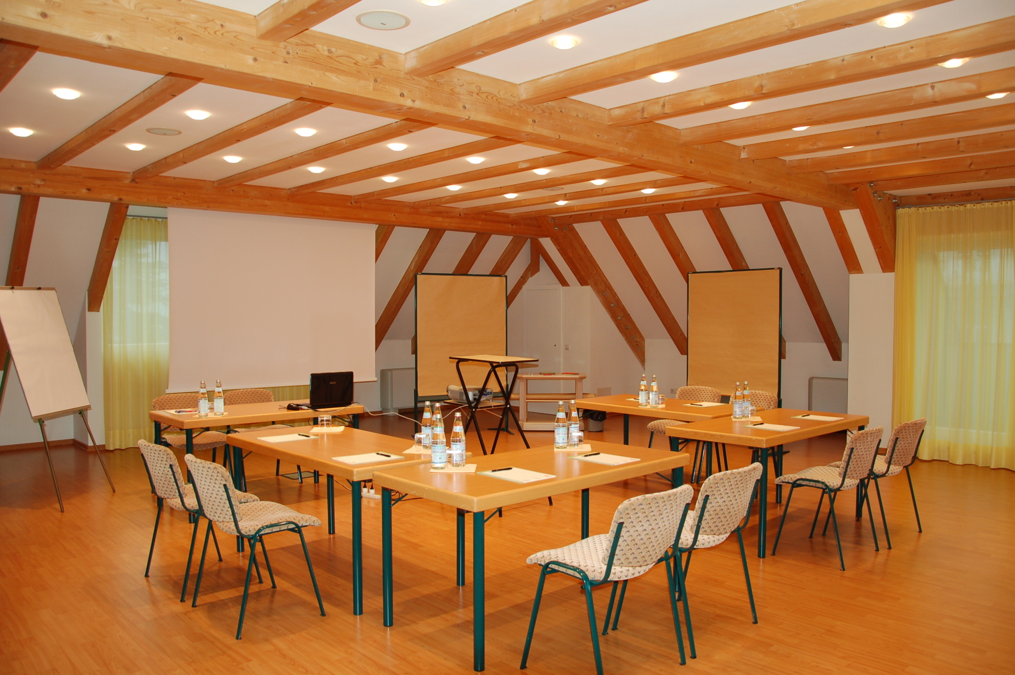 Unser Meeting-Raum verfügt über Leinwand, Beamer, Flipchart, Anschlüsse jeglicher Art, Mikrofone, optimale Beschallung sowie einen Internetanschluss. Je nach Teilnehmerzahl kann der Meeting-Raum mittelsTrennwand vergrößert bzw. verkleinert werden. Es ist Platz für 25 Personen. Die Bestuhlung kann je nach Bedarf und gemäß Ihren Wünschen individuell angepasst werden. Gerne sind wir Ihnen bei der Planung Ihres Seminars behilflich.